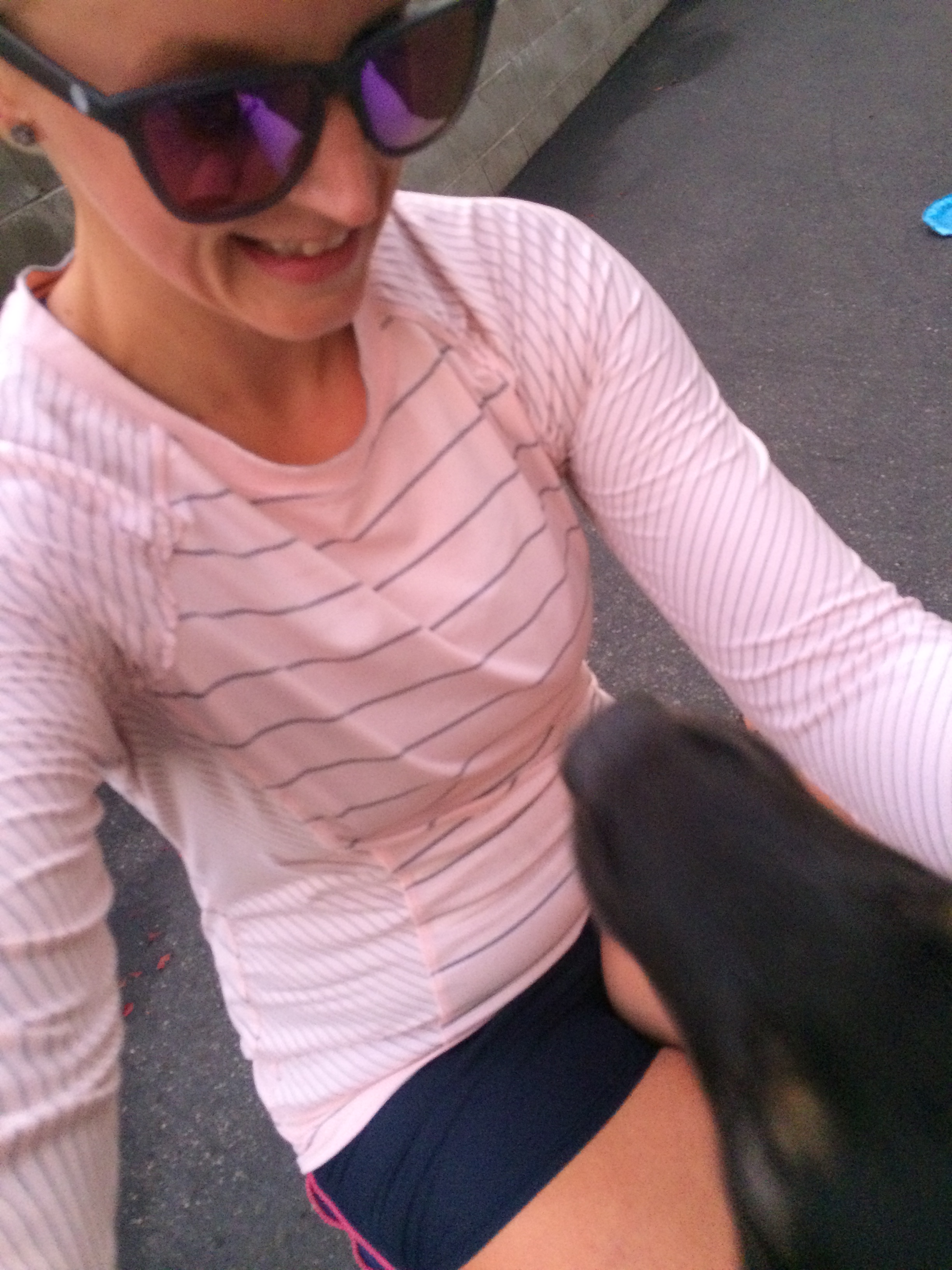 It wasn’t exactly cold but it wasn’t warm either.  We have been enjoying some lingering rain systems here which is great because we desperately need it but hard because it’s so not the norm.   I figured I would be ok in shorts and I decided to test out the new long-sleeved top that I has picked up.   I knew I had to make myself keep it on though.   🙂   I figured I would get hot soon and I did around mile 3.    I kept an easy pace and took some walk breaks.   I felt tired but pretty good.  I have been running the same 5 mile route lately so I know where all the splits should be.   I noticed that my Garmin was lagging a bit, guess it didn’t appreciate the cloud cover.   The mileage geek in me had to re-map my route after my run since it seemed off.   Oh, and while I may have felt warmer on top, my legs stayed a little cold.  I had a minor chafing issue? What gives, it wasn’t 100º and that is usually the only time I have issues with my legs- ugh!