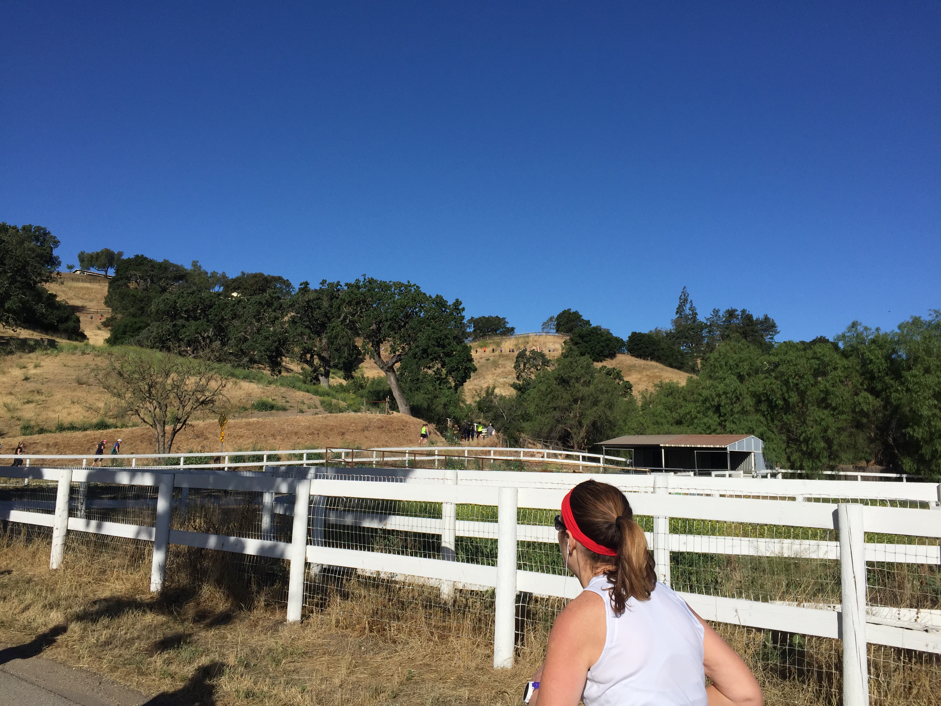 I was staying steady, sluggish but steady and that was fine. The course so far was more back roads and neighborhoods, I was waiting for vineyards. I was actually surprised that the roads were completely closed- it was awesome but I was surprised- I’m only used to that at races with much bigger crowds. A little past mile 5, we were running into the town of Los Olivos- it’s so small, it’s so cute! Crowd support picked up too because mile 5.8 was the relay transition point. I won’t lie- getting a medal at 5.8 looked pretty awesome. I knew we were almost to the end of the “climbing” section but since the uphill hadn’t been so up, I wasn’t counting on much of a downhill.