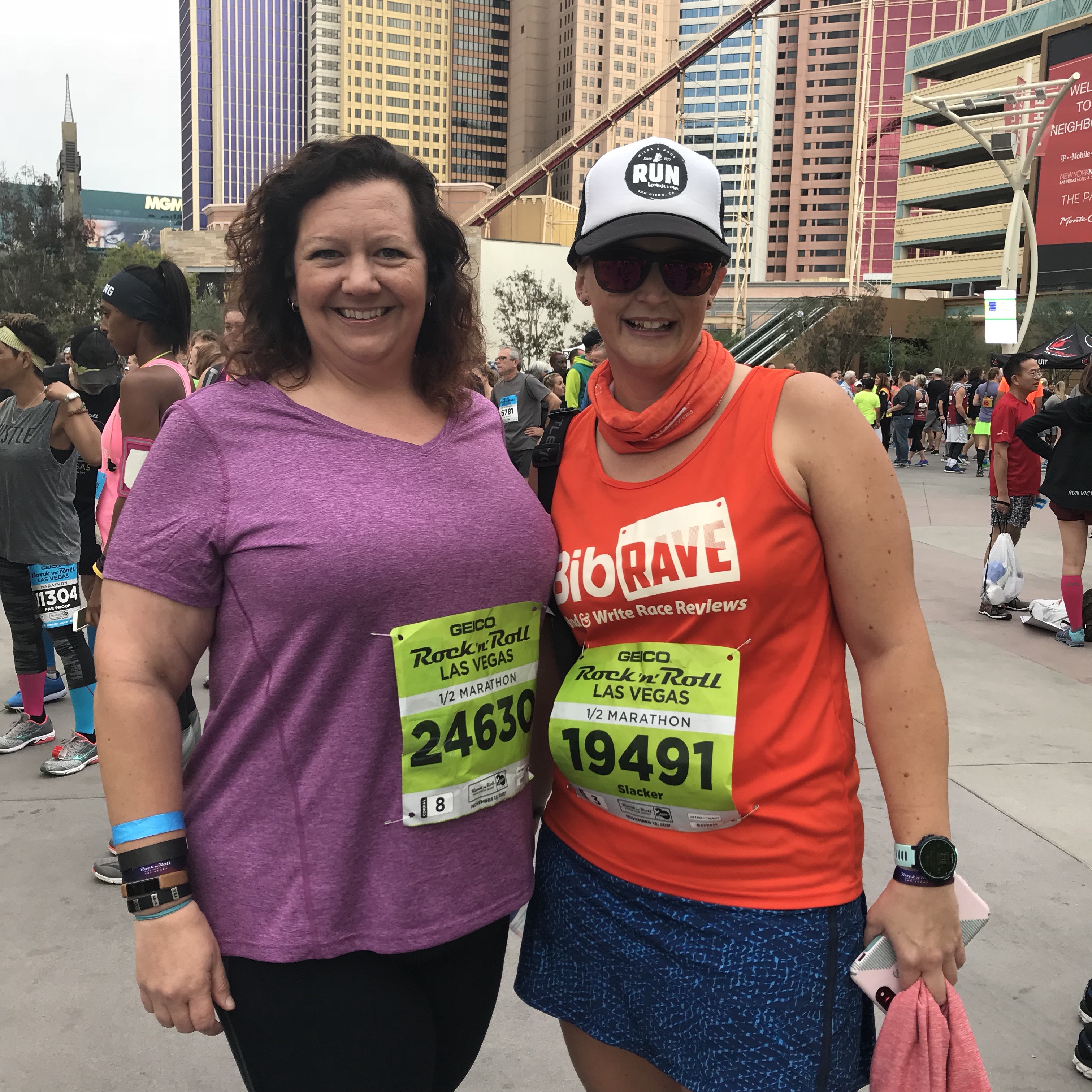 The second I knew I had convinced Kate to fly to Las Vegas from Texas and run her very first half marathon, I knew I was running it with her, no matter what.   In the week leading up to the race, she was worried about slowing me down but I said to not even worry about the pace, we were aiming for ‘party speed’.  😎