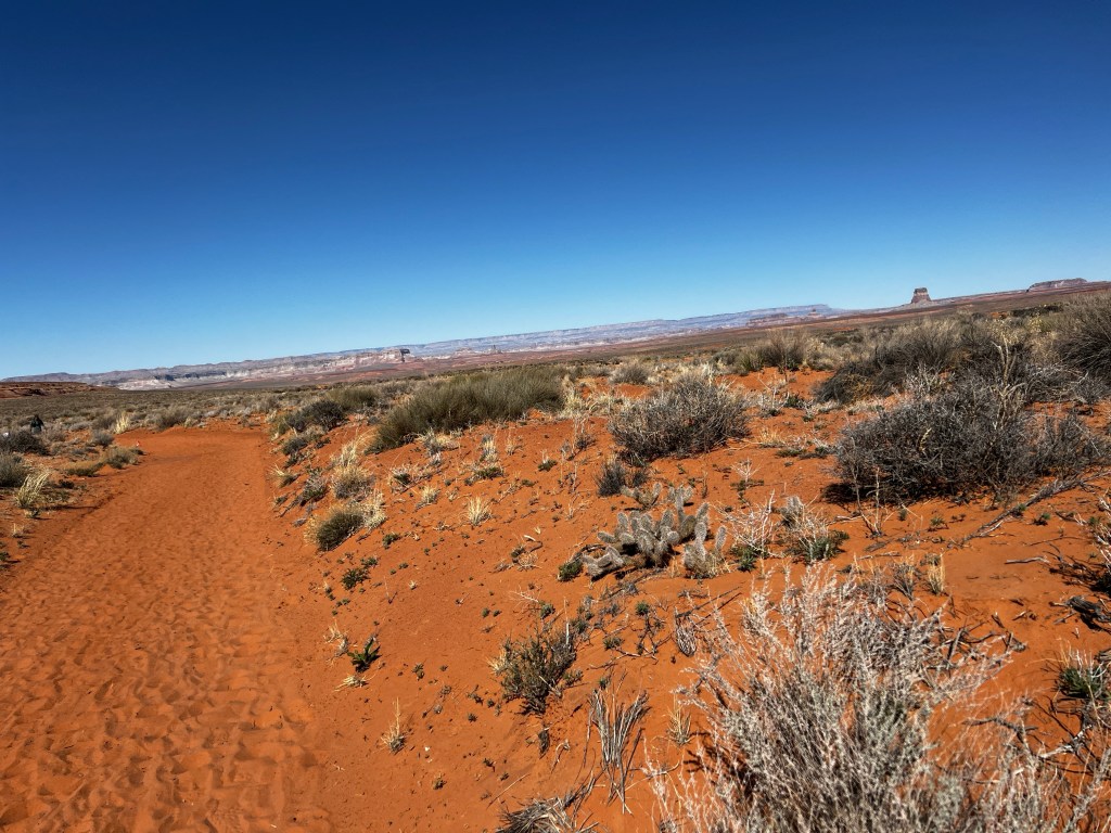 By now, I was about 20 miles in, and the steepest climb of the day was ahead of me and I was so over it. We made it up to the top of the 10-mile loop, which was hard-packed trail. Hallelujah. That part was amazing. At least it started out that way. My mother pulled ahead of me again, saying she had stomach issues and I was just slogging it out. Honestly, I was kind of in a dark place for this 10-mile loop. It’s about 100 feet in the air, right on the edge above Lake Powell and dark place me was thinking about how easy it would be to fall over the side and just be done. Not good. At this point, we were almost three hours over when we thought we were gonna finish, and only around mile 25. I had been in the sun for longer than I had planned, and I was mentally going down. I continued my way around the upper loop, just struggling it out. I realized I had stopped sweating and was turning clammy and becoming super shaky. I was having serious issues.e