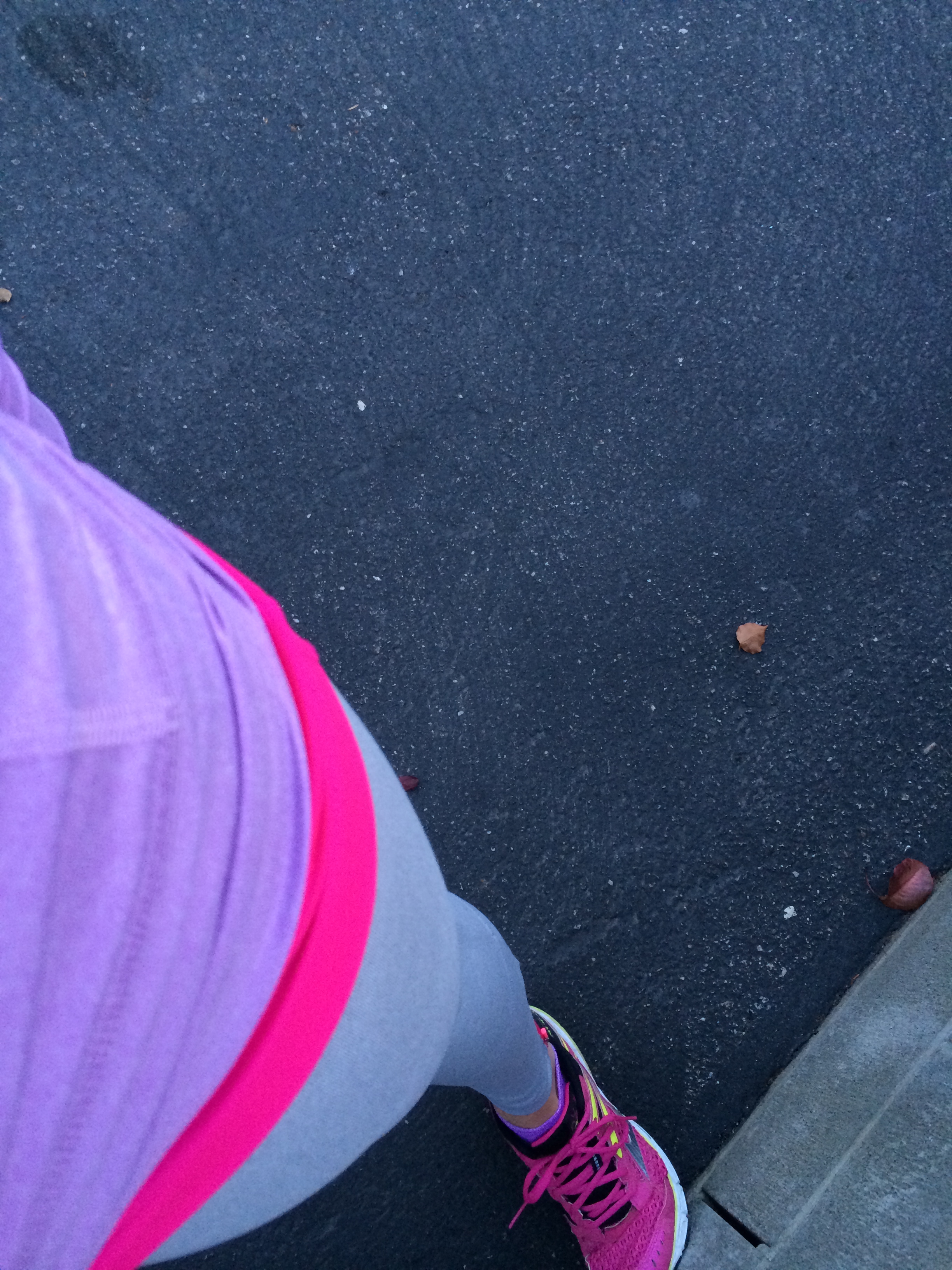 This was also the first time I had ever run in full length pants not capris. I had picked them up while shopping on Sunday, and figured it was cold, why not try them out first thing? They were awesome. They never moved or slipped and felt comfy the whole time. The waistband was still higher than I would like but I think that’s just me. The odd thing is that I bought these exercise pants at Abercrombie (I know, I know, but I really like their sweaters, even when I was 40 lbs heavier). Random I know, but I have not been liking the pricey Nike capris or the numerous pairs of Fila I own. I had to go up a size and I was hoping for a lower waist but so far, worth the money. Which was the best part- $20! They washed well the first time, so now to see how long they last.