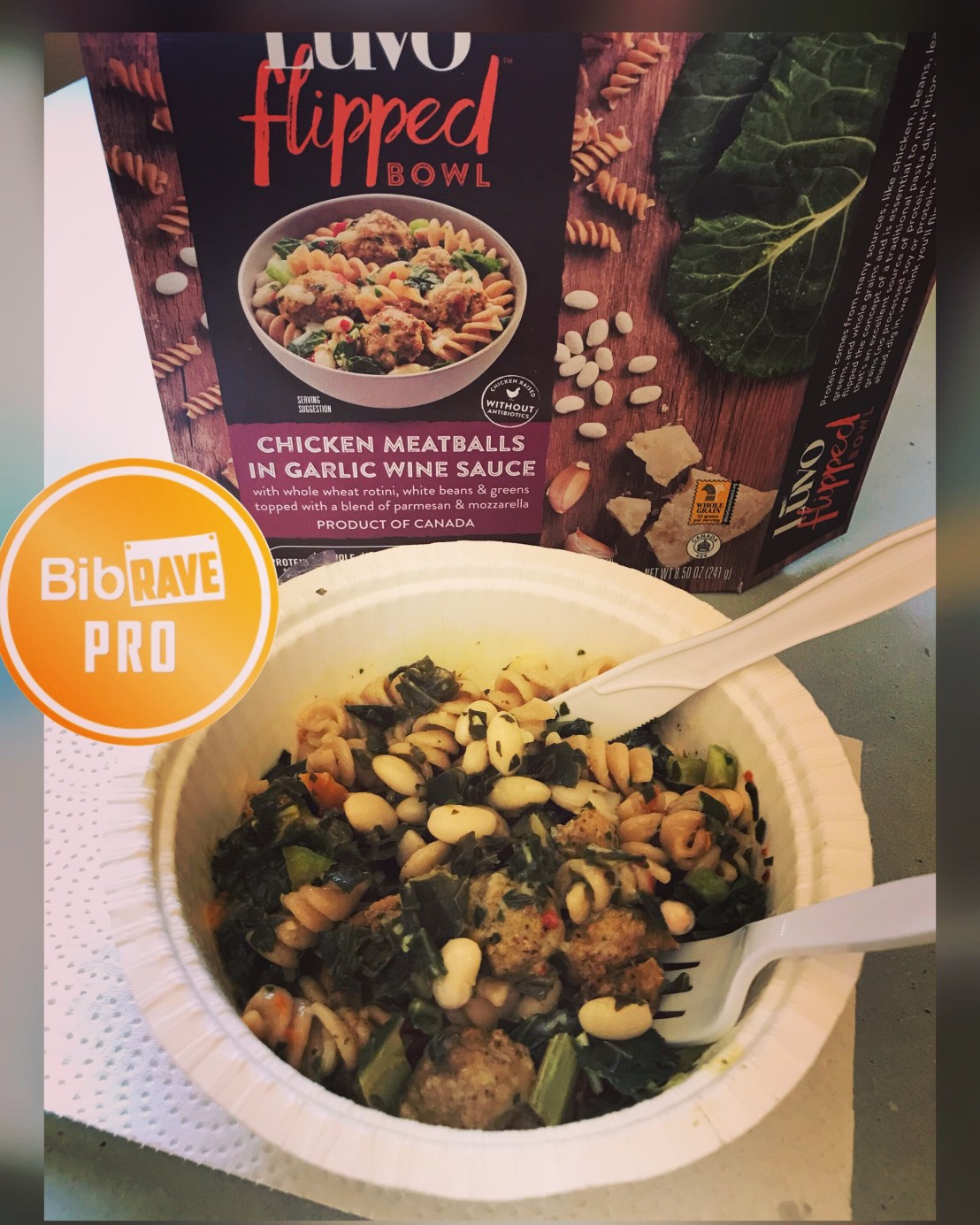 When I read about the new Flipped Bowls– where 1/3 of the protein comes from plants- that Luvo was rolling out, I was intrigued. Pasta, chicken meatballs and good mix of veggies? I could get behind that. Plus, the convenience factor was so up my alley.