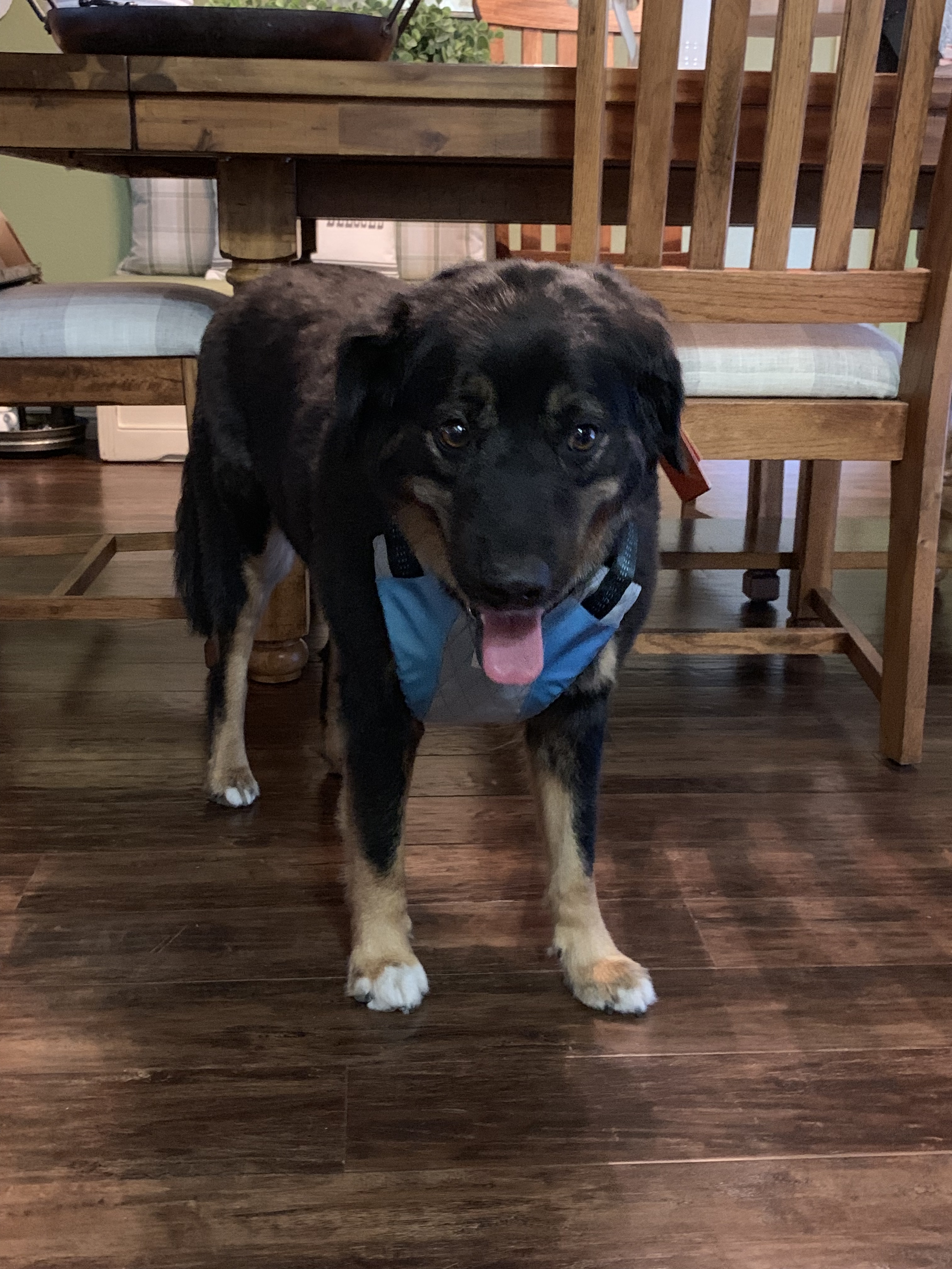 When it arrived, she was super excited like she is anytime I tell her I got her something. Then she saw it was a harness. Then I put it on her. Cue not happy face.