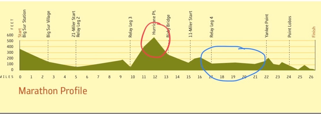And most people would be worried about the part in the red circle. But nope, I’m worried about the blue circle. That flat is going to hurt. I’m not a fan of flat. But then this may make me change my mind about hills.