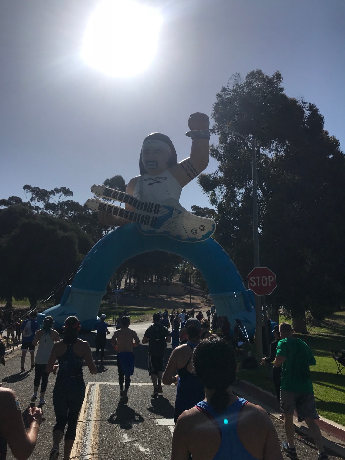 From then on it was a run- walk to the end. Which is a bummer because I really like the last 3 miles. We come back into Balboa Park, run under the big guitar guy, up a hill past some Taiko drummers, by a golf course, then there’s a sweet downhill that brings you back into the city. I may have been feeling rough but I was still trying to enjoy as much of my surroundings as I could. Then it was through downtown with a slight down hill to the finish-