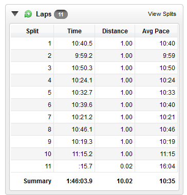 So no, this race did not go according to plan but it was still a good weekend. Shopping was fun, the food was yummy. I also learned that I have serious problems tolerating humidity (74% WTH?!). I got a few compliments during the race about my use of neon and I got a shout out from a fellow SLO ambassador when she ran by me. So while I am rethinking some things, I still call this weekend a win. 🙂
