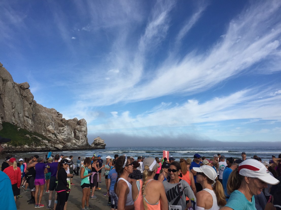Around mile 2.5, we hit the rocks at North Point. They were no joke. We bottle necked and slowed to crawl as we all tried to figure out the best way to cross them without breaking our faces. Once that was done, it was back to the beach to run on. Around mile 2 we had started to run into the marine layer. And it was dense. But I ignored it. Until I couldn’t. 11:18, 11:18, 11:31.