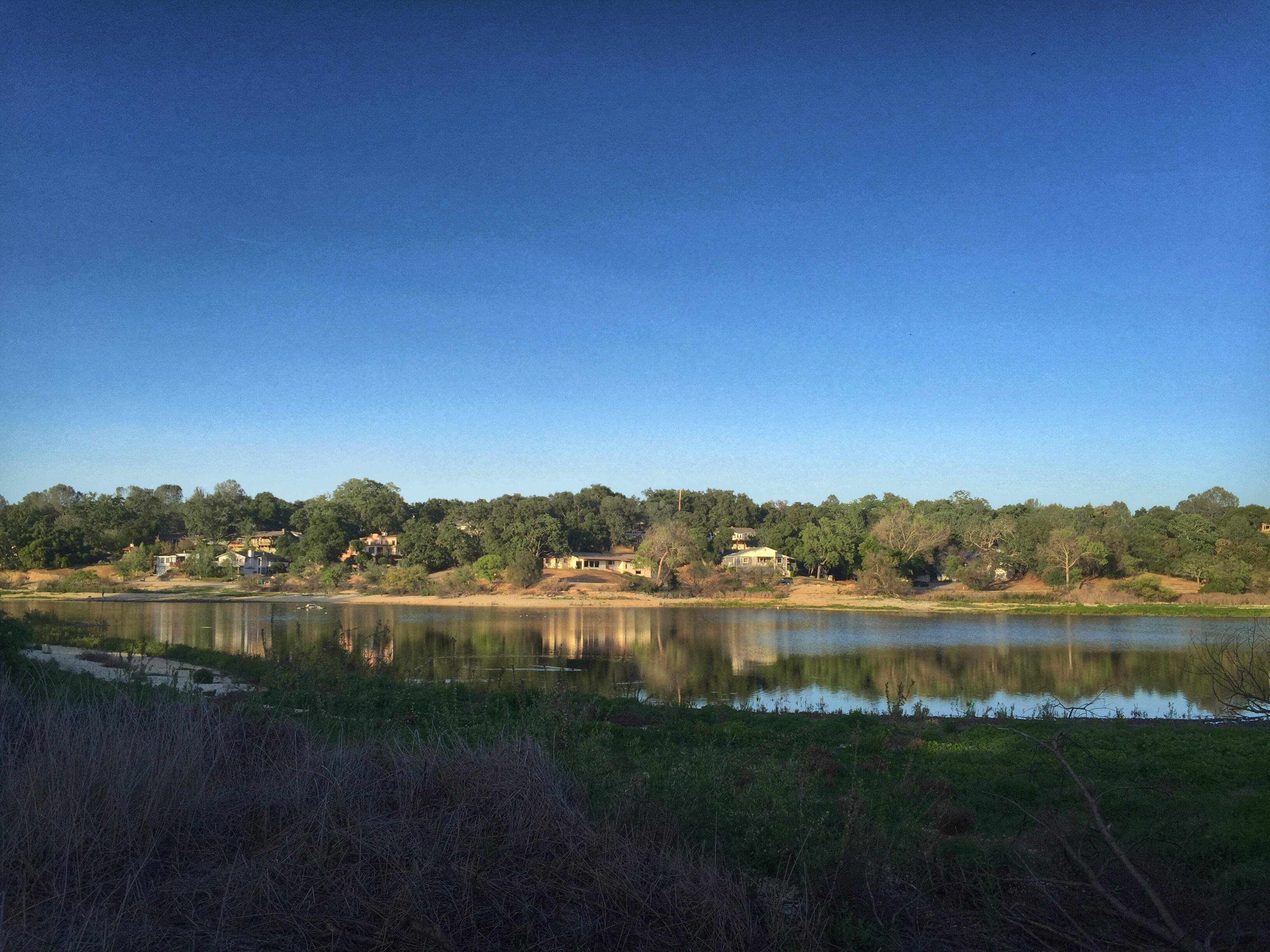 Somewhere along the line I decided to see what I could handle. After a warm up mile, I threw in a mile at tempo pace. Then to give my stomach a little break I walked .10 mile and then ran another tempo mile. And repeat. The miles felt comfortably hard and my stomach was cooperating. I made sure to take a break between all 3 tempo miles just to keep it happy. After a .75 mile cool down, I was at 5 miles and called it for the day. I felt pretty good and was stoked about the times I hit for the 3 tempo miles. I as on the back side of the lake so I figured I would walk back to my car the long way around. I would stretch along the way and I wanted a few pictures because it just looked so pretty. The ducks are coming and it was kind of fun running with them flying overhead. I took a few then I was on my way.