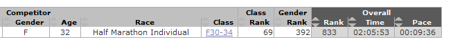 It was a good race and I am proud of our time. We followed it up with a good lunch from Woodstock’s, a great salad and a slice of pizza. Now it’s time for bed for me, my legs are kind of sore!