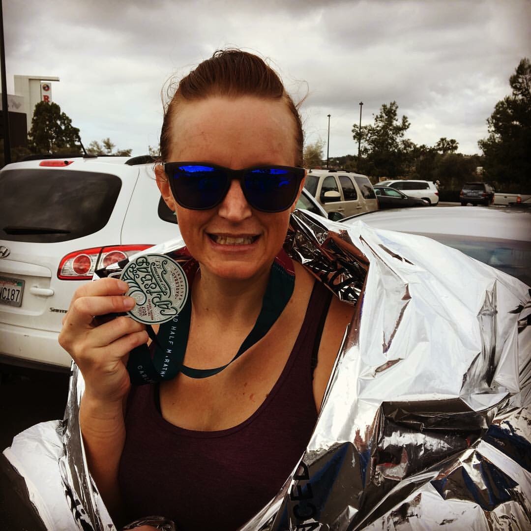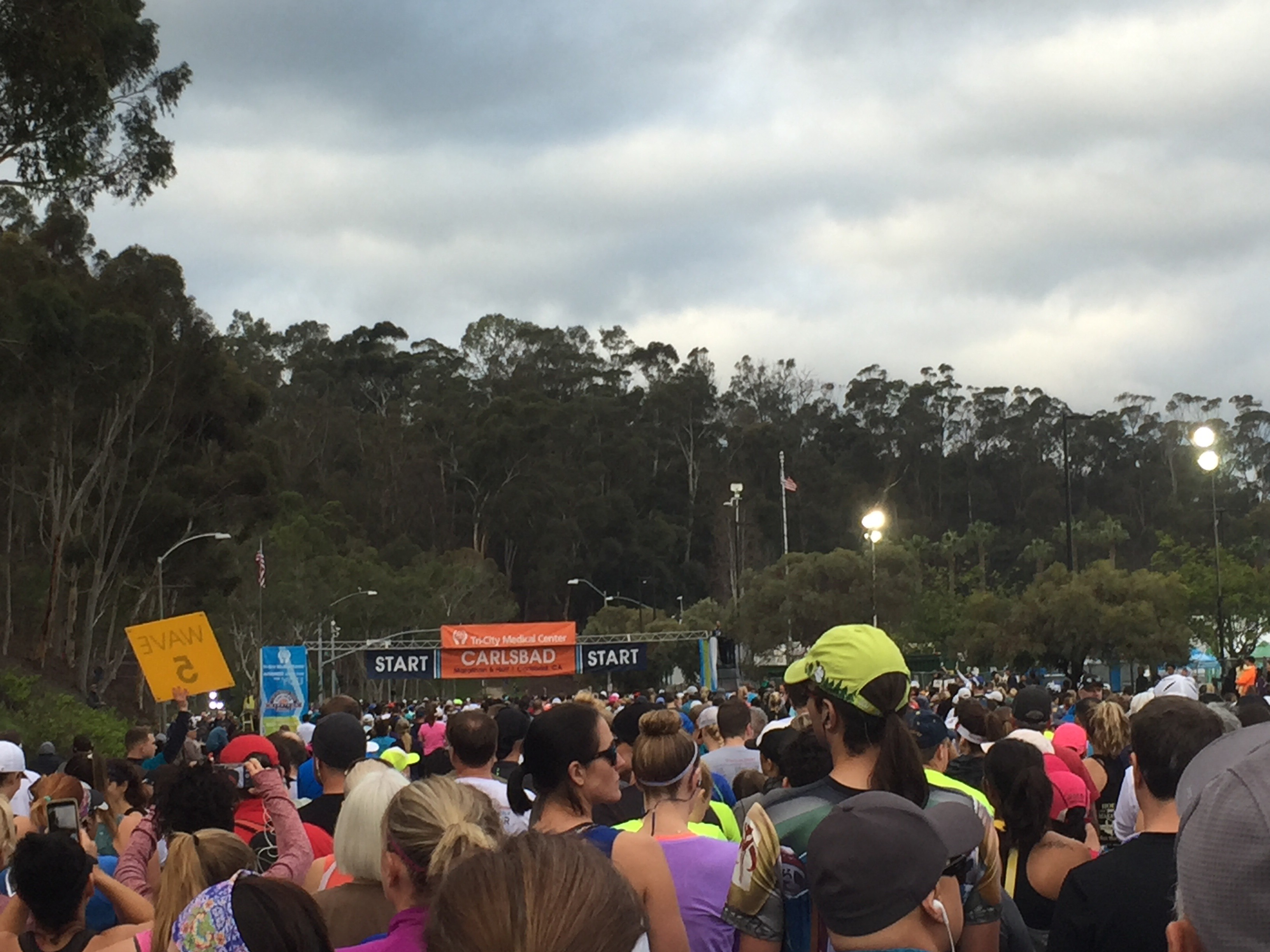 The course has 2 decent inclines (mile 1 and 7) but otherwise it’s a nice rolling course, which is kind of my jam. My plan of 3/1 was kind of thrown to the wind and I was just running when it felt good and walking when I needed to. The views of the ocean to the right were pretty awesome and the village of Carlsbad was pretty cute. Aid stations were on point and there were surprisingly more people out cheering than I thought. There were also bands playing music along the way. I was warming up too but it felt good to be running in a tank top though.