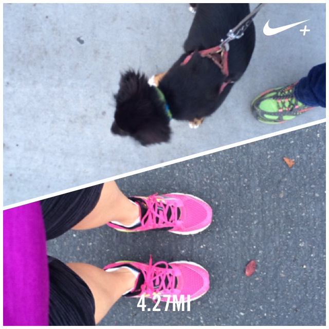 On the seriously irritating side, when I was getting out of my car before the gym, I noticed my left, front tire was flat. What?!! I was just at the tire place on Friday and they said they fixed it. Maybe that irritation helped get me to mile 4. What’s a girl to do when the same tire goes flat twice in 2 weeks? I won’t lie, I called my pops. I can change a tire but I have problems with the jack placement. Plus he has all the fancy tools. My dad changed it and using a flash light, we found the nail and drew a circle around it for the tire shop. 🙂 Then I threw it in the trunk and today was spent driving around on the donut. Not cool. I was driving a little slower than usual but still at the speed limit but so many people passed me. Slow down, people!