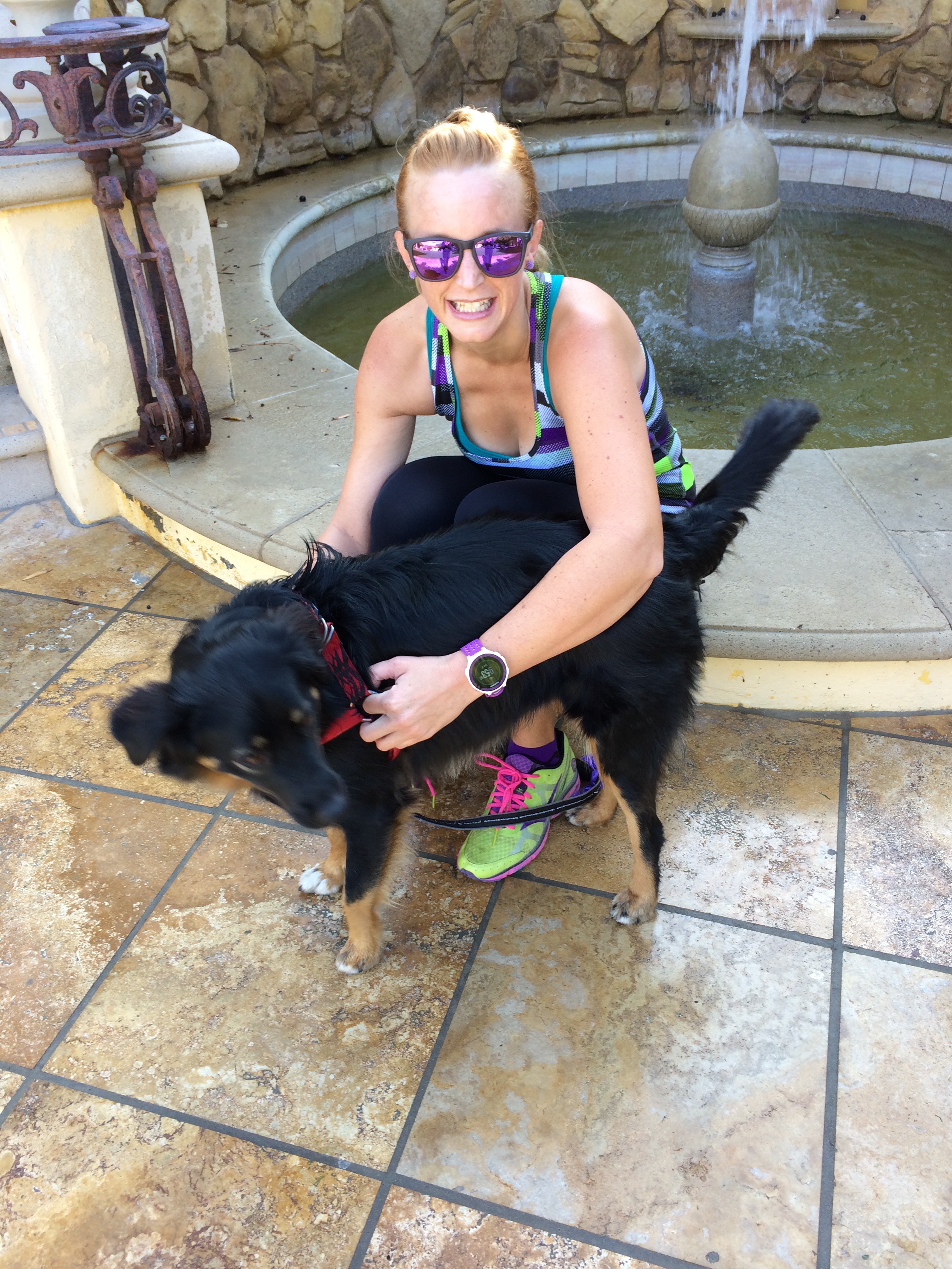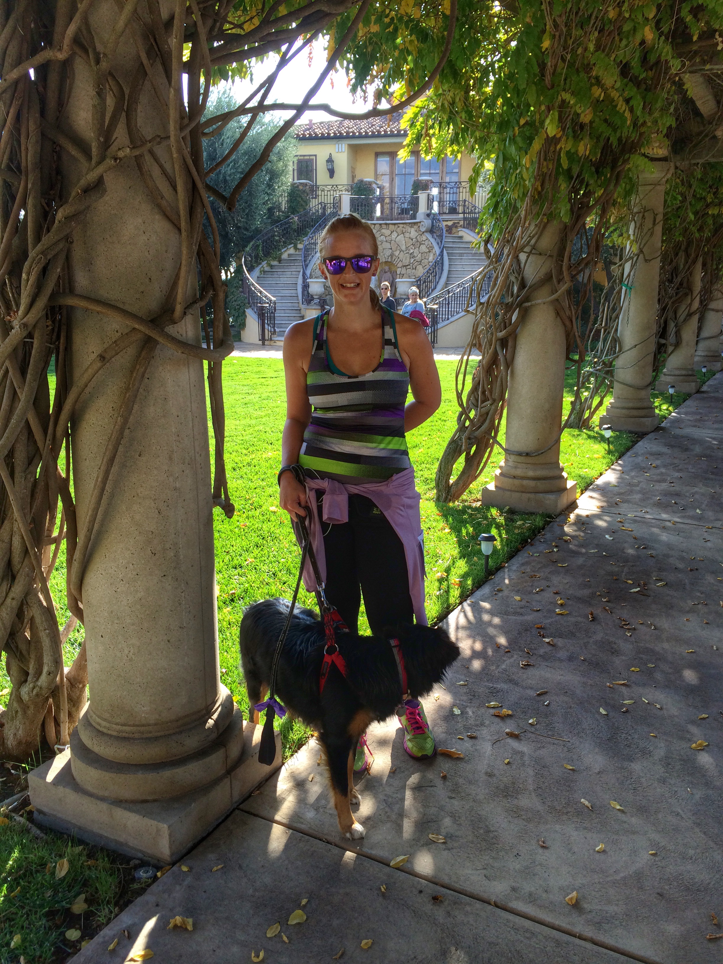 The finish line was kind of gorgeous so we took enjoyed the scenery for a while before heading home. There was a man who ran the race with his chocolate lab so we let Zoey and her meet. Zoey was so excited to meet a dog that wanted to play and not attack her. The lab was small for the breed and super sweet. She put up with Zoey’s hyper level well. So it was a good morning all around! 🙂