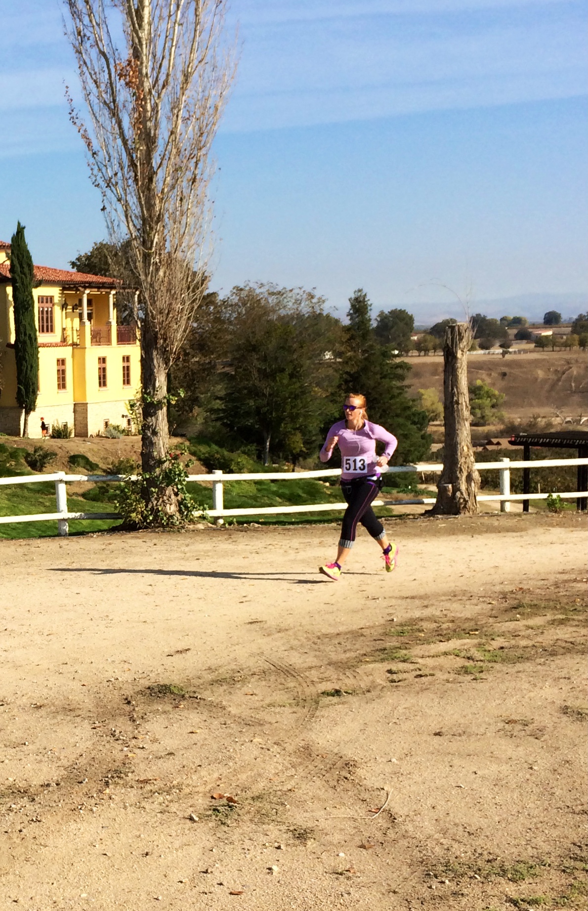 I was also way too damn hot. Capri’s and long sleeves were way too much for high 50’s. I passed a guy in white shirt before rounding a corner and another little incline. Red shirt caught back up. No! I sped up. Another trek between two vines and it was up the last biggest hill and back towards the start. I briefly checked my watch because I knew I had to be close to 30. 32:something, ugh.
