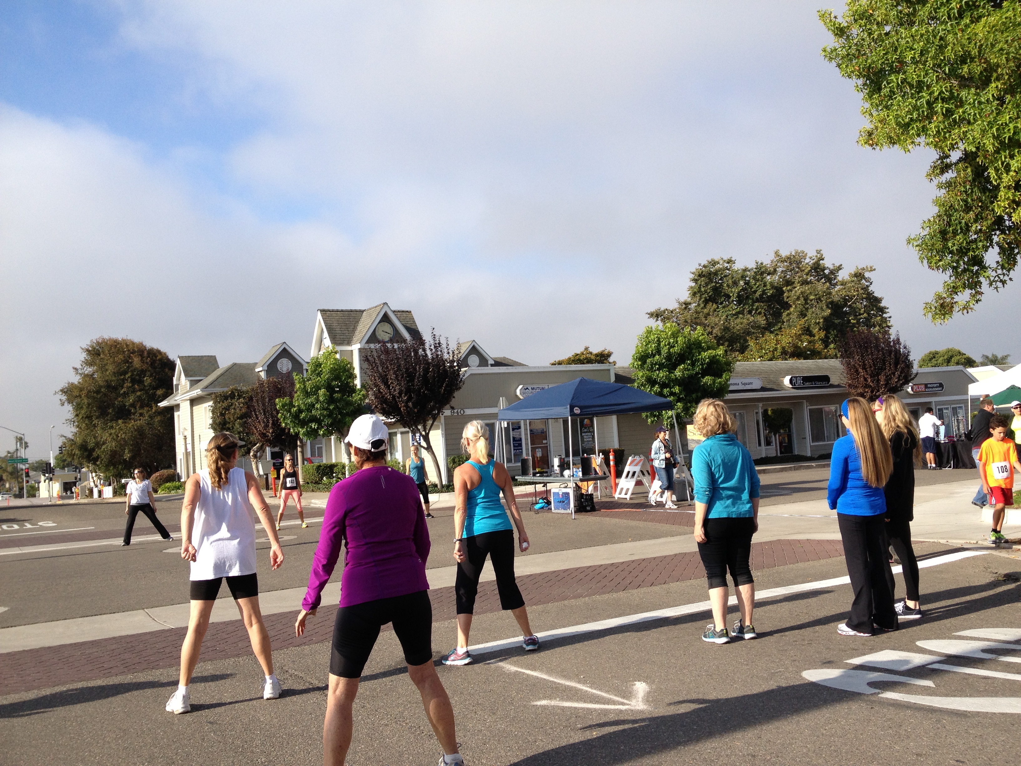 This race claimed to be in its 25th year but it need some better organization. The starting line was a chalk line and there was no electronic timing. Yea for the Nike+ app! When picking up your race bib, you were told to fill out the bottom portion. Not being told why, I figured it was for a raffle and didn’t bother since I never win anyways. There were no race shirts or finishing medals. About 15 minutes to go time, my friends and I were catching up when a very perky announcer and friends held an impromptu jazzercise class as a race warm-up! Definitely a race first for me.