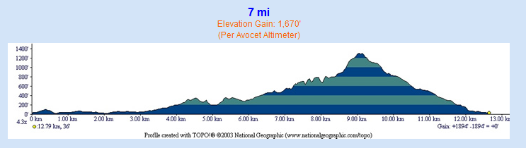 Yep, that says a 1700 foot elevation gain. I have actually done the incline portion before. Now, granted, I walked a lot of it last time, but my splits looked something like this-