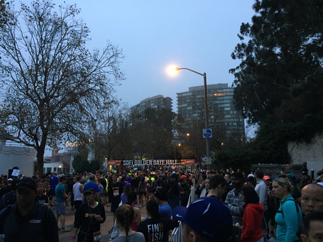Due to the parking nightmare of San Francisco, I had picked my hotel based on proximity to the race. I had a short half mile walk to the race start. I was soon surrounded by thousands of other runners waiting for the race to begin. I was also officially confronted with the fact that the race started uphill. Ouch. I met up with another BibRave Pro- Brian– and we chatted. It was nice having someone to talk to pre-race, I usually try to just not freak out. 😛 The National Anthem was sung and the race started right on time.