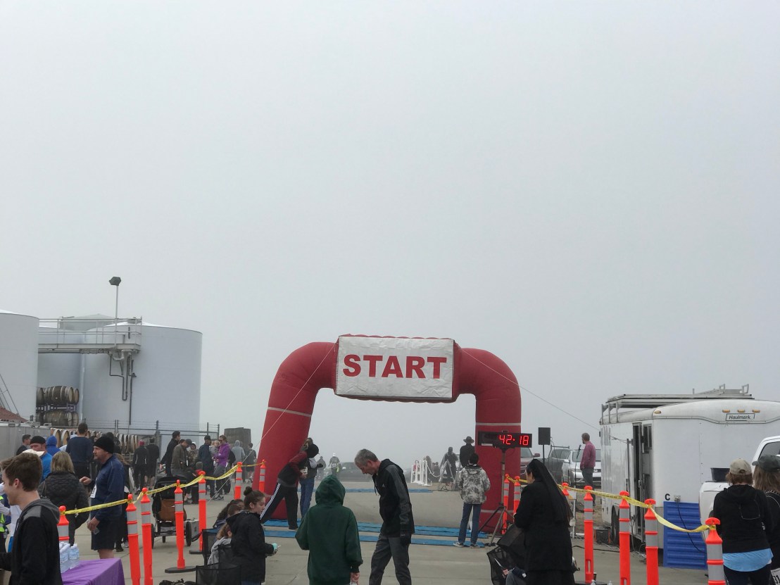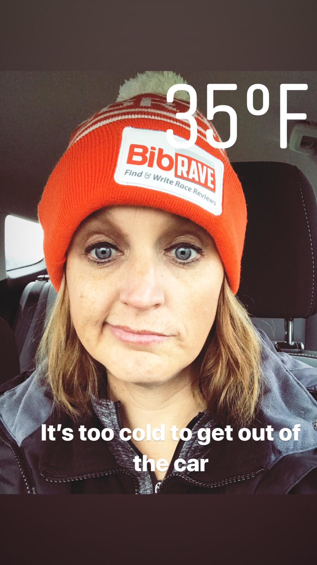 Having mostly decided the night before that I was actually going to do the smart thing and drop to the 5K, the temps that I saw upon waking on race morning almost made me DNS. 32 with heavy fog?? Say what? What was that all about?? On a good day, that would be rough, the morning after so many days of feeling horrible? I just wanted to burrow under the covers and hide until summer.